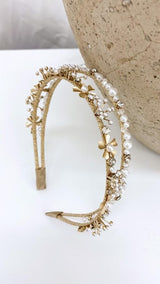 Dress to impress with Allie Pearl Floral Headband Gold, an exquisite accessory crafted with mixture of crystal and shimmering pearl beads craftmanship. Transform any look with that classic, timeless, and sophisticated touch.
