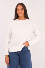 The Endless Long Sleeve Tee White features a classic design with a side split hem and lightweight feel. Its crew neck and clean finish make it a comfortable choice for everyday wear.