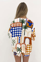 This matching top and short set features a round neckline, short sleeves, and an elastic waistband for maximum comfort. The top comes with front pockets while the shorts have pockets on the side. Its tie-up front adds a touch of style, perfect for a fun summer look.